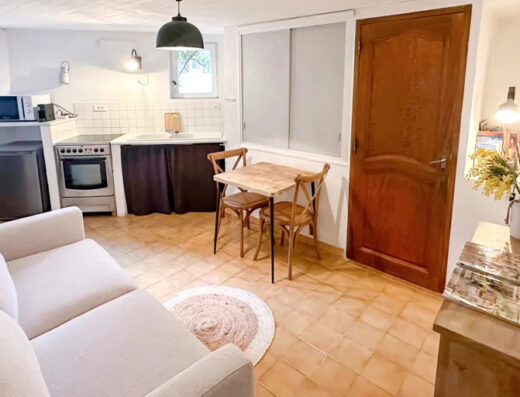 • 1 cuisine équipée d’un réfrigérateur/congélateur, cafetière Nespresso et bouilloire et un accès direct à la terrasse.